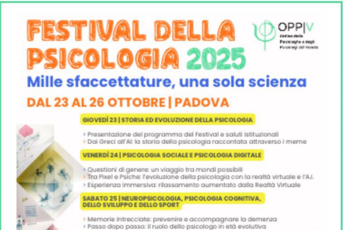 TORNA IL FESTIVAL DELLA PSICOLOGIA 2025, PROMOSSO DALL'ORDINE DELLE PSICOLOGHE E DEGLI PSICOLOGI DEL VENETO
