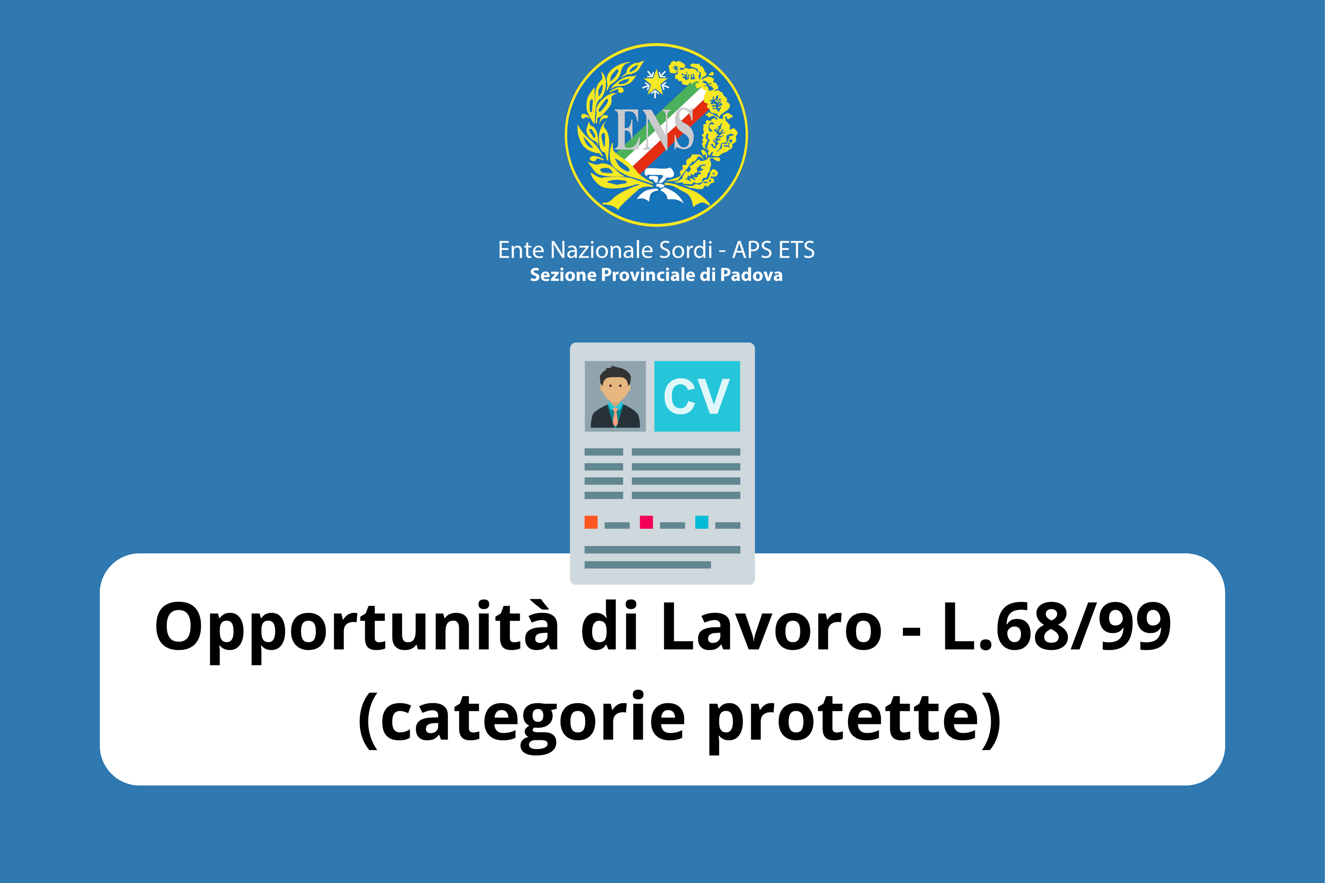 OPPORTUNITÀ DI LAVORO - L. 68/99 (CATEGORIE PROTETTE)