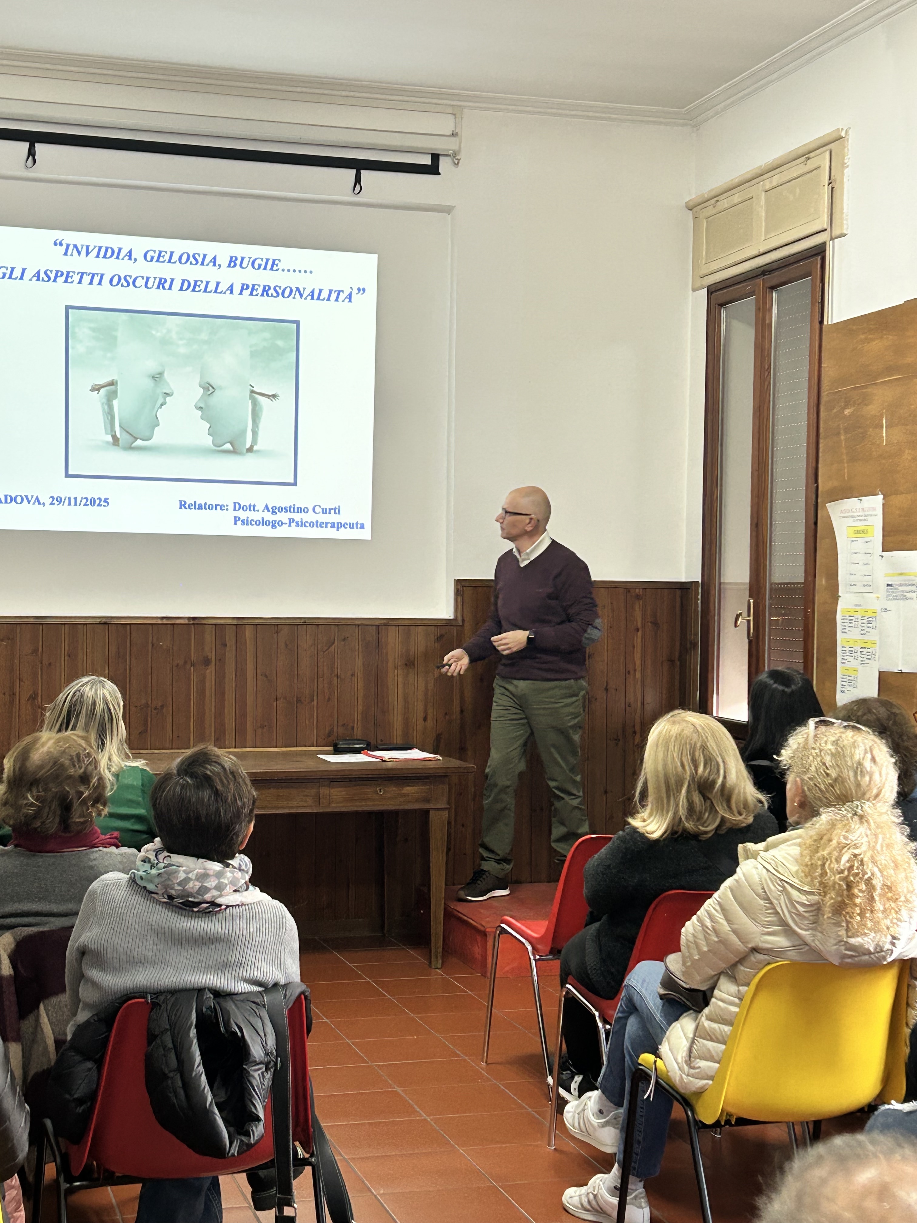 Il 29 novembre 2025 ci siamo ritrovati nella sede ENS di Padova per un pomeriggio molto interessante guidato dal Dott. Agostino Curti. Parlare di invidia, gelosia e bugie non è mai semplice per nessuno, perché toccano emozioni molto comuni, ma spesso difficili da gestire. Per questo l’incontro è stato seguito con grande attenzione e con il desiderio di capire meglio noi stessi e gli altri.