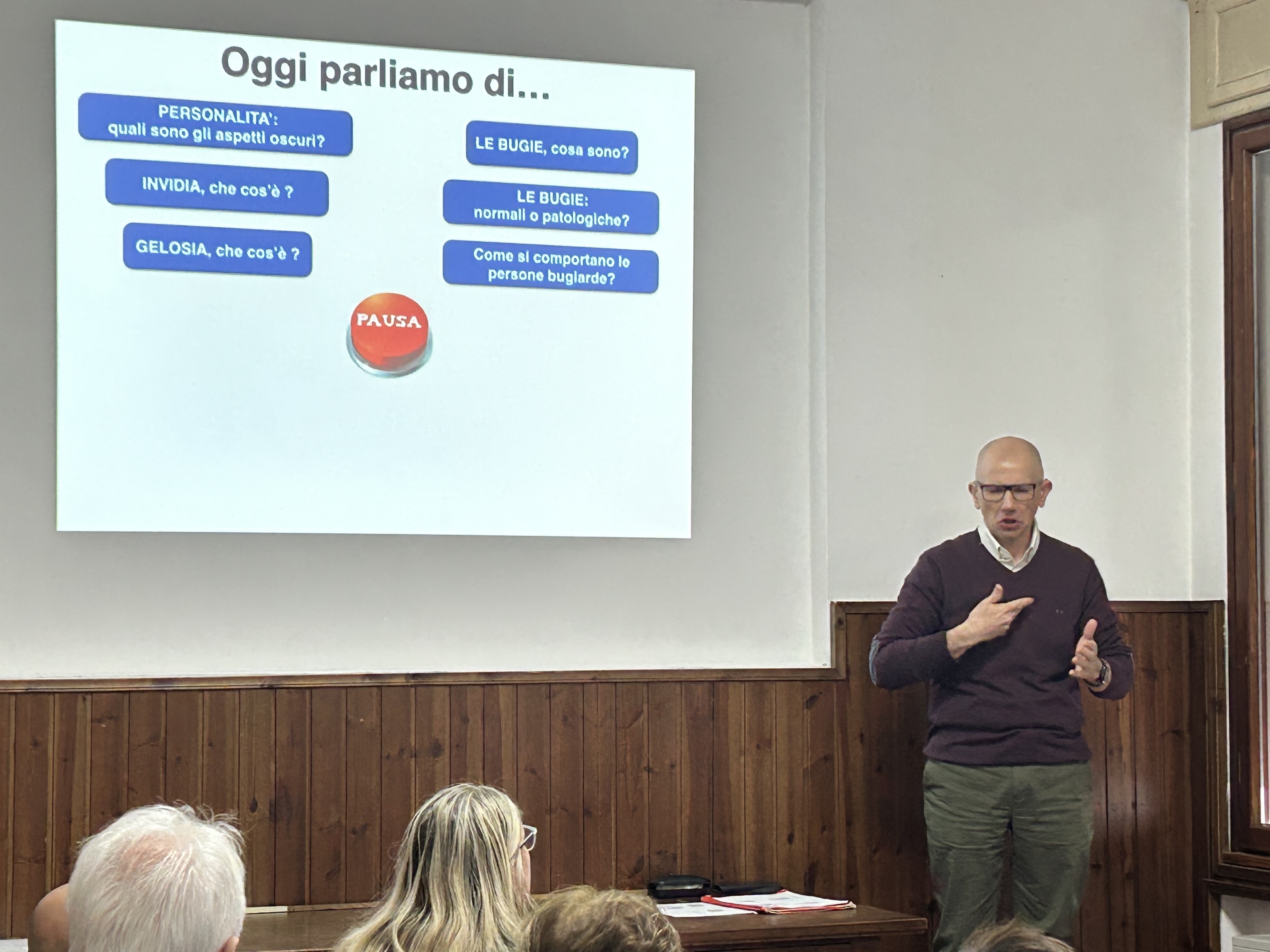 Il Dott. Agostino Curti ha saputo spiegare tutto in modo chiaro, con calma e molta disponibilità. Ci ha aiutato a comprendere come nascono queste emozioni e cosa succede dentro di noi quando si attivano. Attraverso esempi concreti, momenti di riflessione e piccoli spunti pratici, ci ha mostrato come l’invidia possa nascere da un senso di mancanza, come la gelosia sia spesso legata alla paura di perdere qualcuno, e come le bugie possano diventare una forma di difesa quando non riusciamo a esprimere ciò che proviamo.